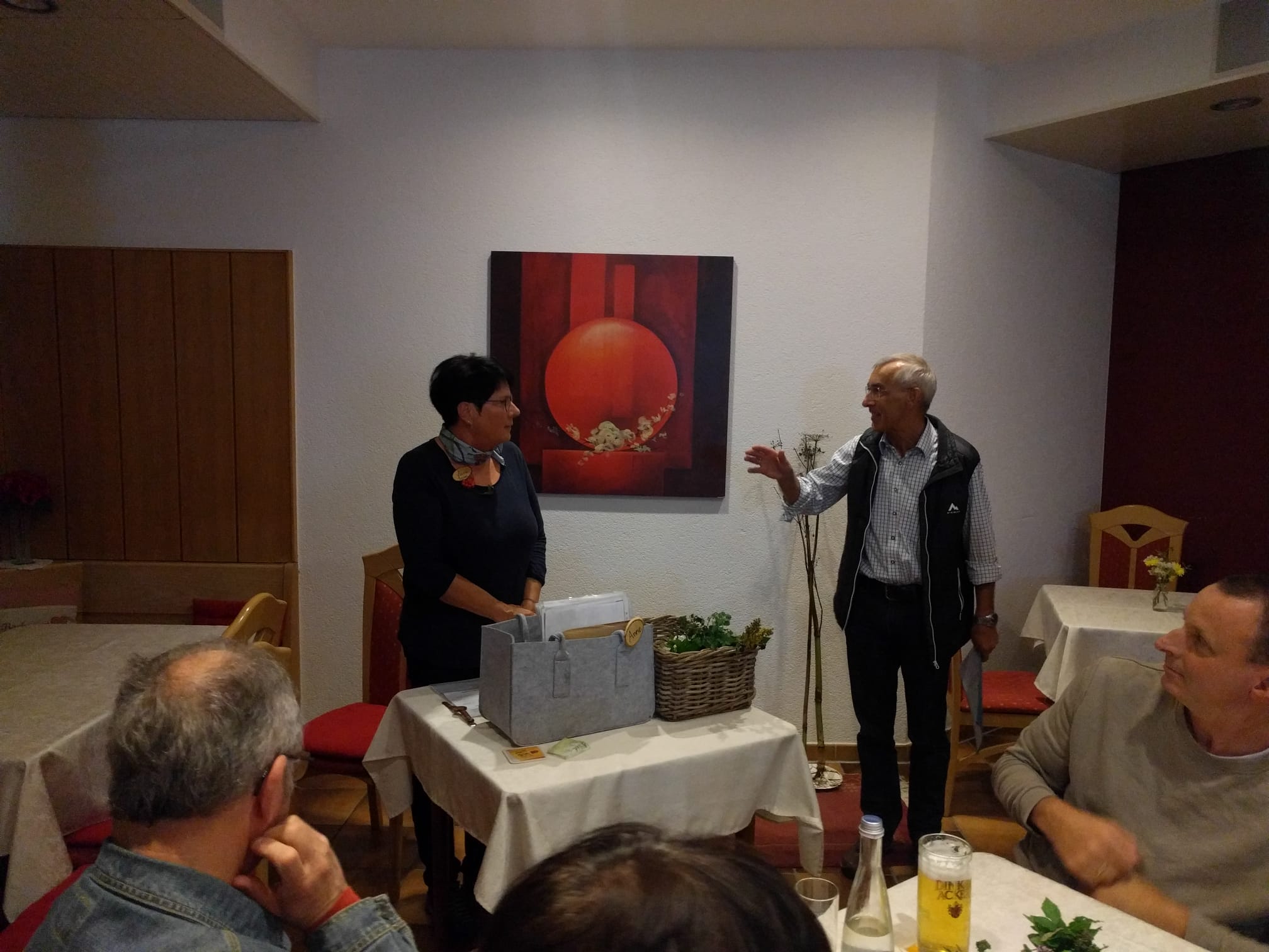 Zum Kennenlernen hatte sie aber zahlrieche Pflanzen und Beeren aus ihrem Garten mitgebracht. Martin Steudinger, 1. Vorsitzender des Obst- und Gartenbauvereins Baiersbronn, freute sich die zahlreichen interessierte Besucherinnen und Besucher zu diesem besonderen und lehrreichen Vortrag begrüßen zu dürfen. Eine Vielzahl von essbaren Wildpflanzen mit entsprechenden Rezepten wurden von Frau Reichel, ausgebildete Naturpädagogin, mit viel Sachkenntnis, Engagement und Herzblut vorgestellt. Selbst dem Giersch, der von den Kleingärtnern im Garten nicht gern gesehen ist, kann Frau Reichel etwas positives abgewinnen: „Isst du Giersch, machts nicht knirsch, er ist gut für die Gelenke“, so Frau Reichel.