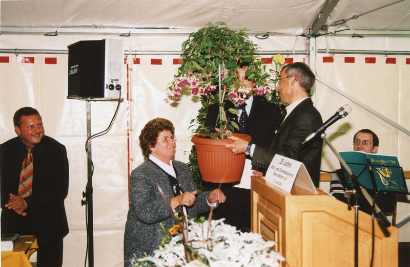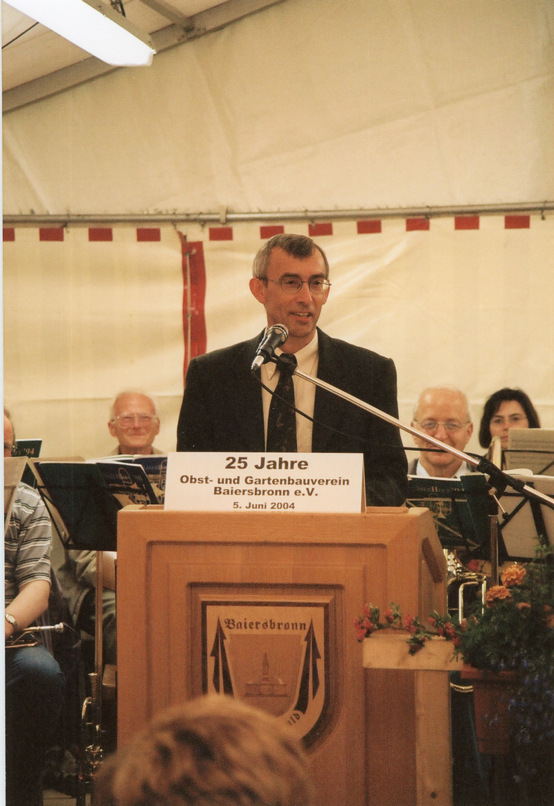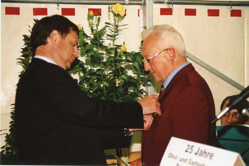 Nach Fertigstellung der Gerätehütte feierte der OGV Baiersbronn am 05. Und 06. Juni 2004 sein 25-jähriges Jubiläum. Anna Maria Weigold, Otto Pfau und Fritz Würth erhielten als verdiente Vereinsmitglieder die Goldene Ehrennadel. Frau Beate Gaiser wurde zum Ehrenmitglied ernannt.