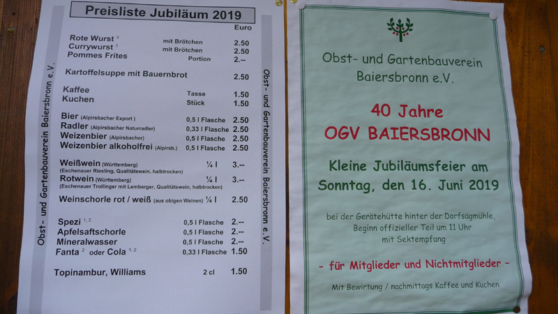 Jubiläum 40 Jahre Obst- und Gartenbauverein Baiersbronn