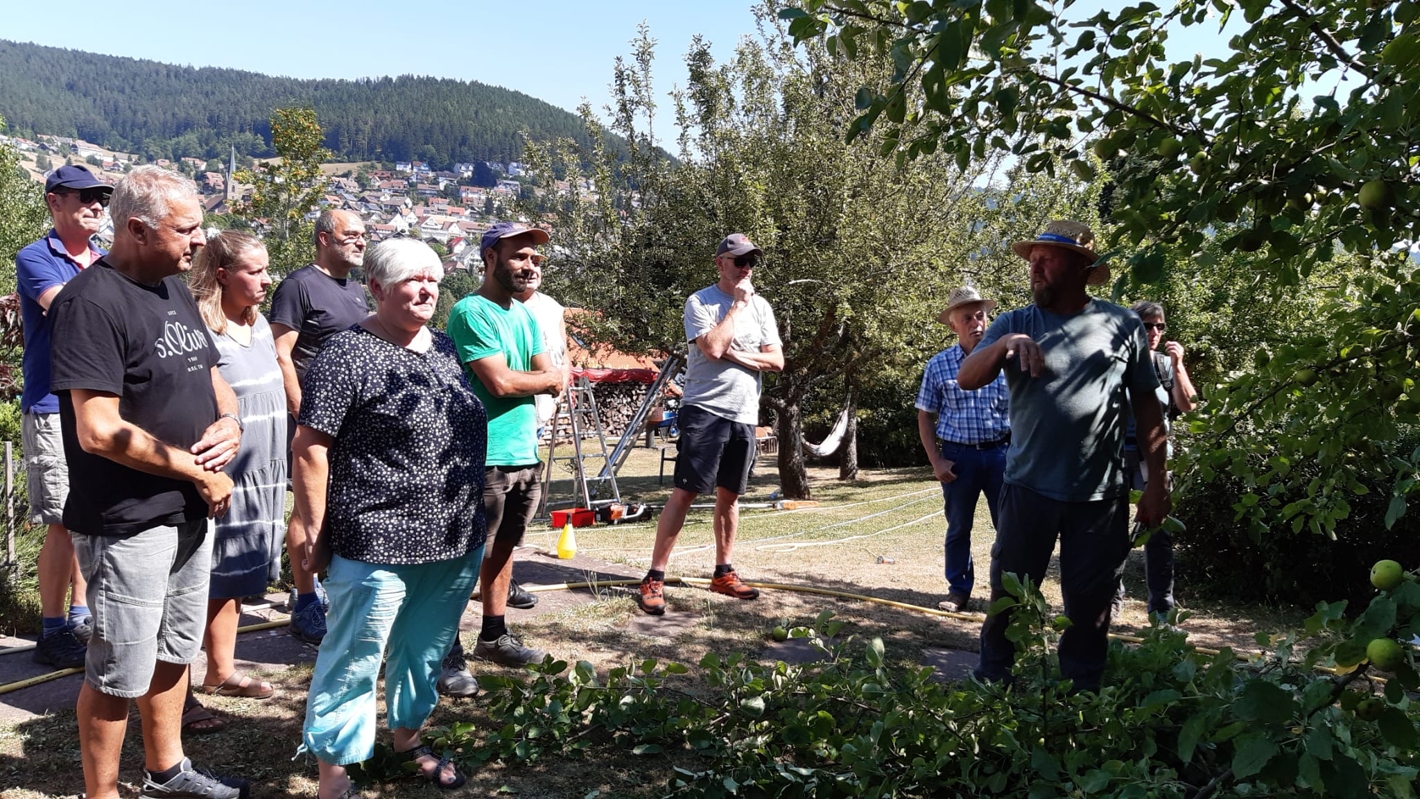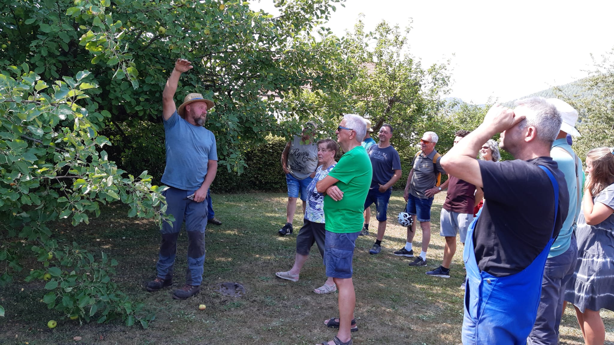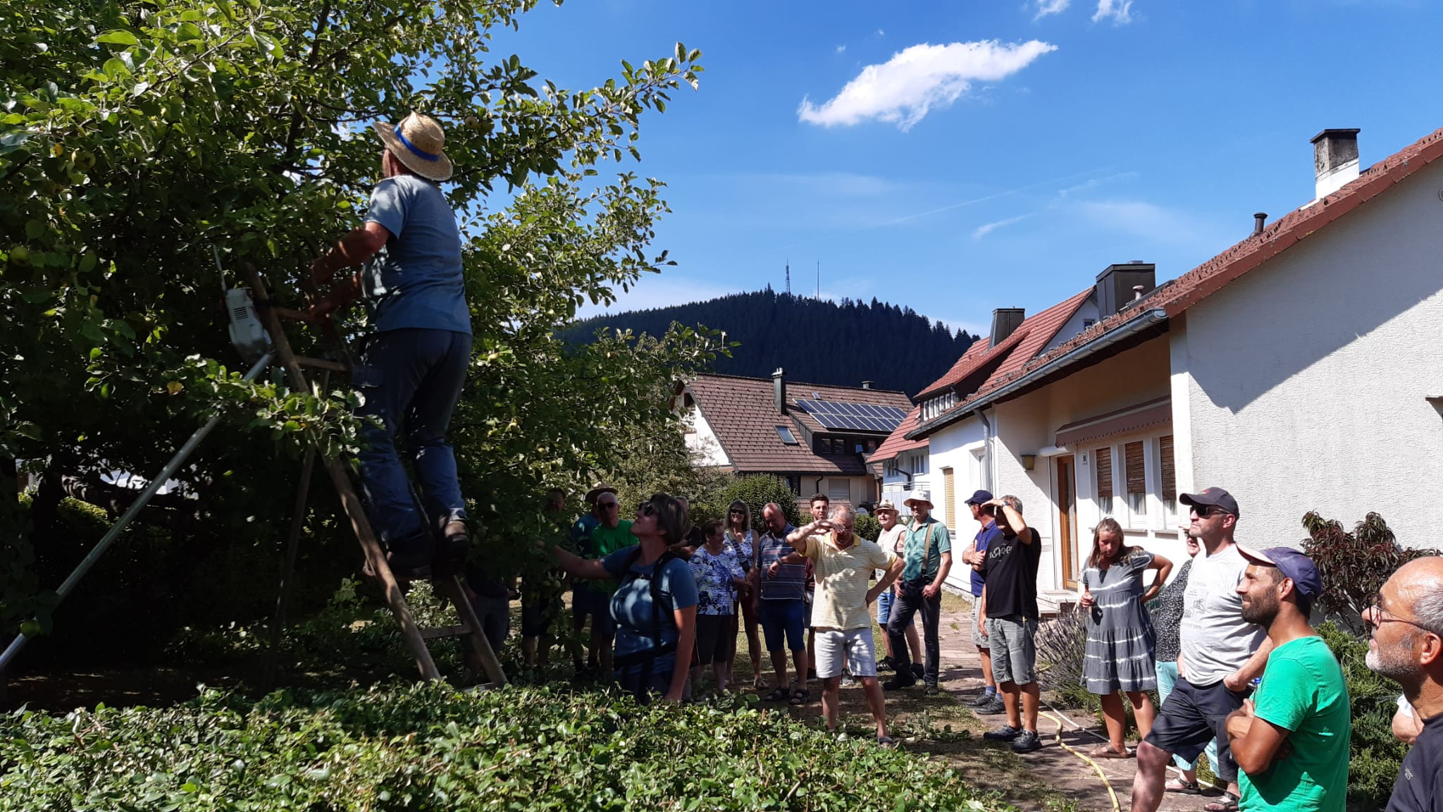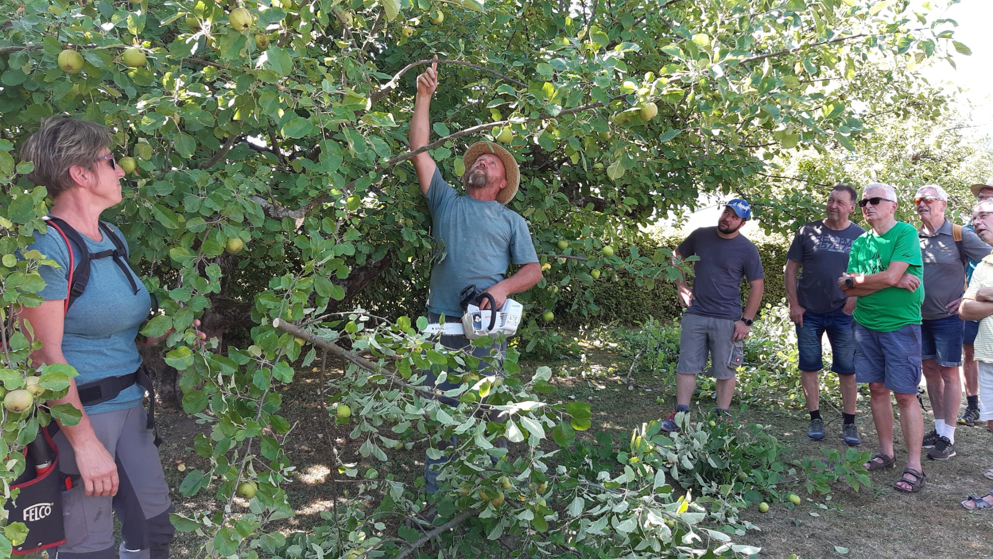 Am 22.07.2022 fand bei unserem Vereinsmitglied Christoph Steudinger zum ersten Mal ein Sommerschnittkurs von Obstbäumen statt. Unsere Fachwarte Jutta und Heiko von Daak zeigten den vielen interessierten Besuchern bei hochsommerlichen Temperaturen eine uns völlig unbekannte und interessante Art des Baumschnittes. Viele der Besucher machten sich anschließend auf den Heimweg, um diese Technik sofort an den eigenen Bäumen umzusetzen.